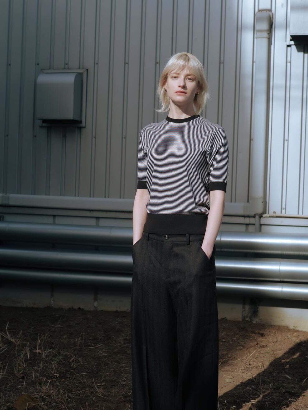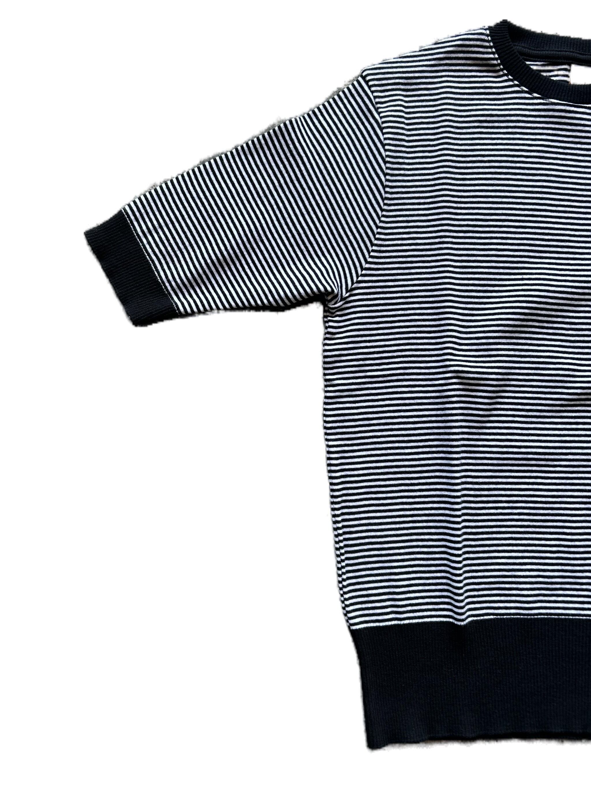 ジチピ(gicip) レディース ARGENTO(アルジェーント)クルーネック5分袖ニットソー/ブラック×ホワイトカラー