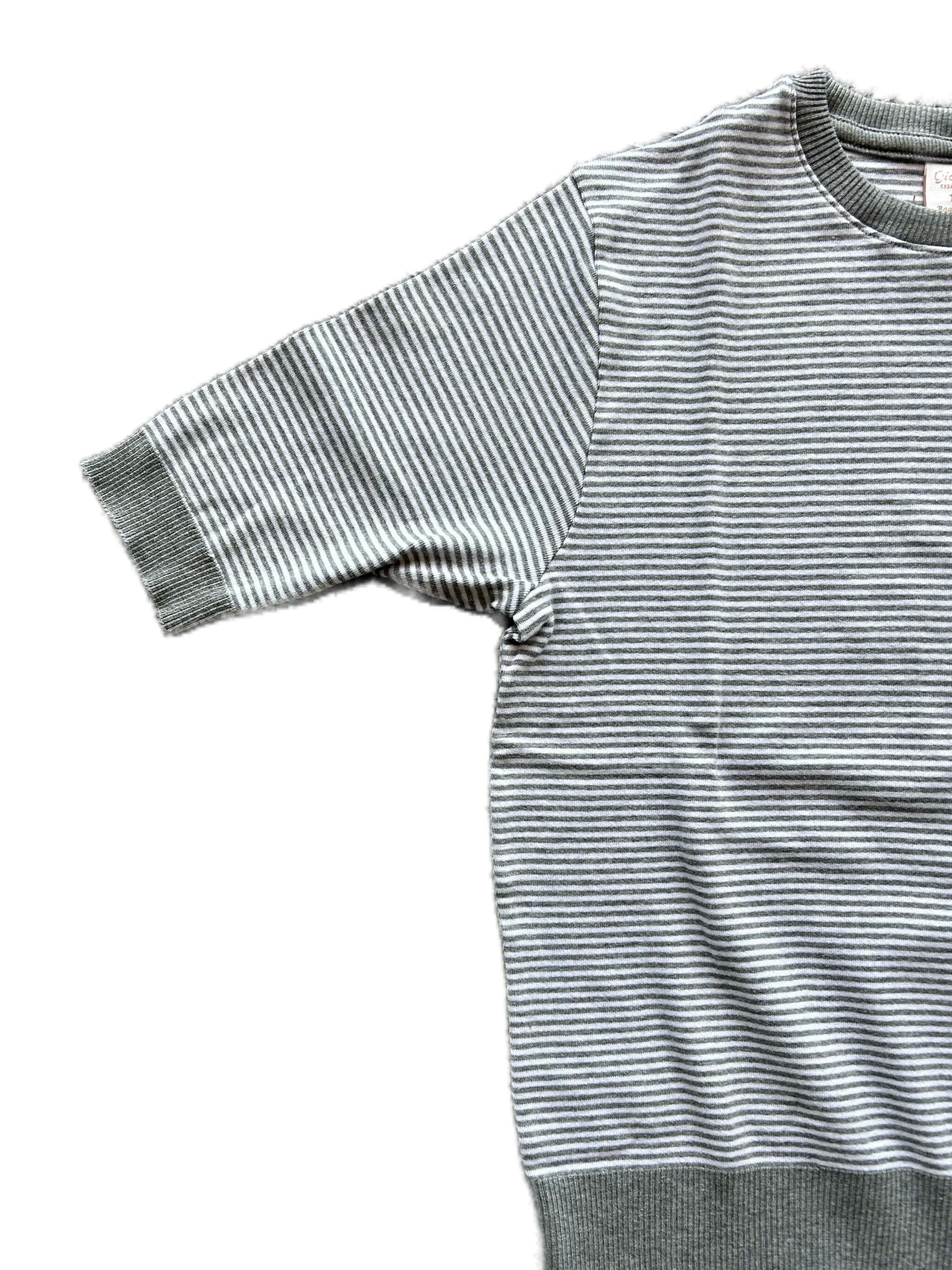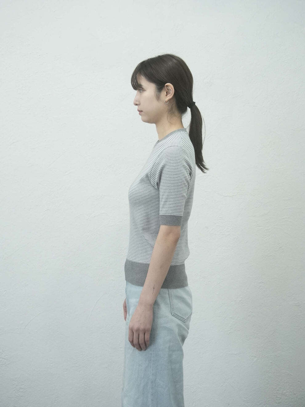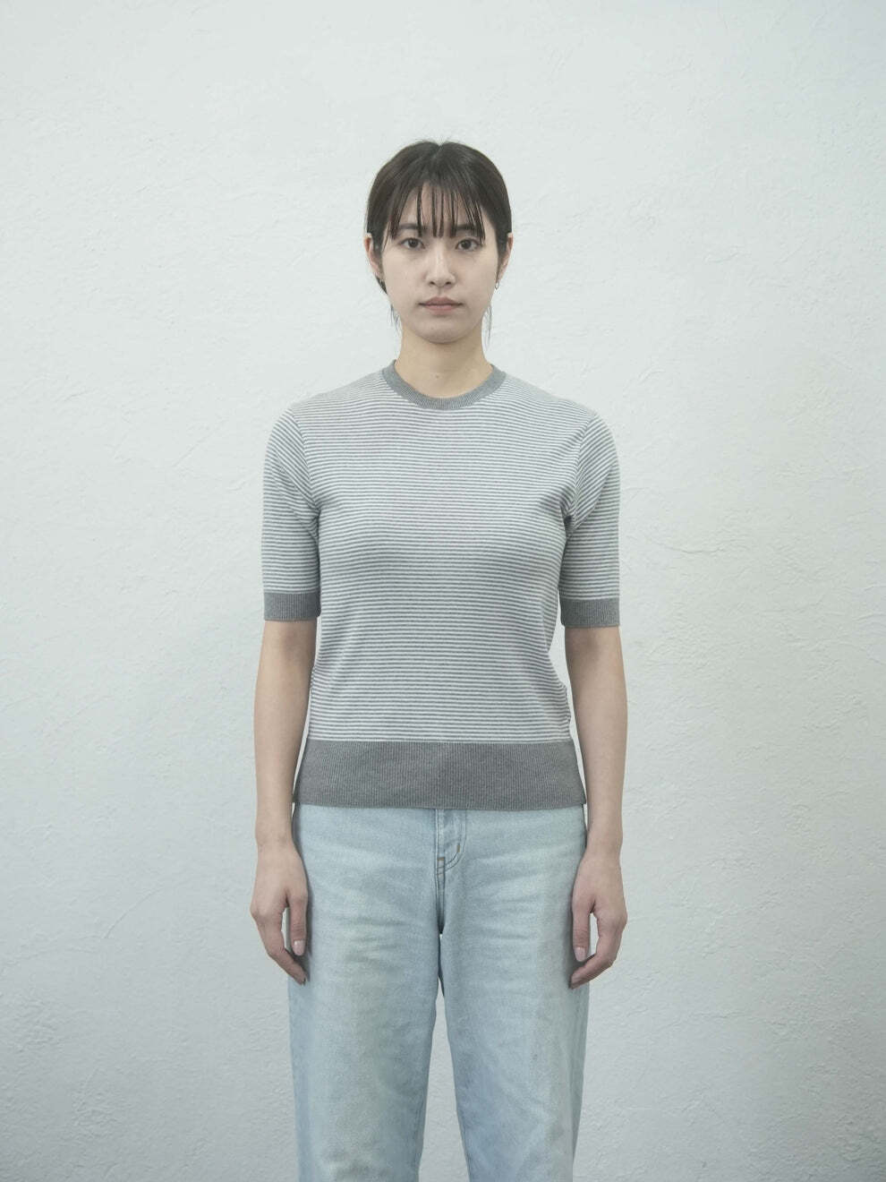 ジチピ(gicip) レディース ARGENTO(アルジェーント)クルーネック5分袖ニットソー/グレー×ホワイトカラー