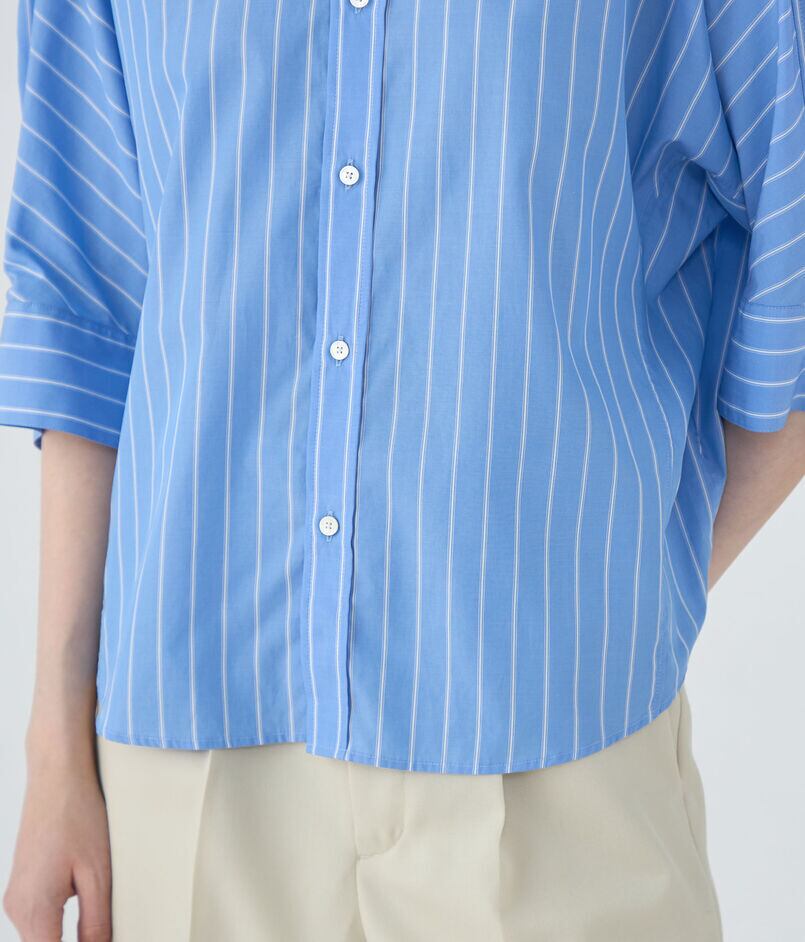 シャツはコンパクトな襟にややボクシーなシルエットで、カジュアルにもきれいめにもお召しいただける一枚。