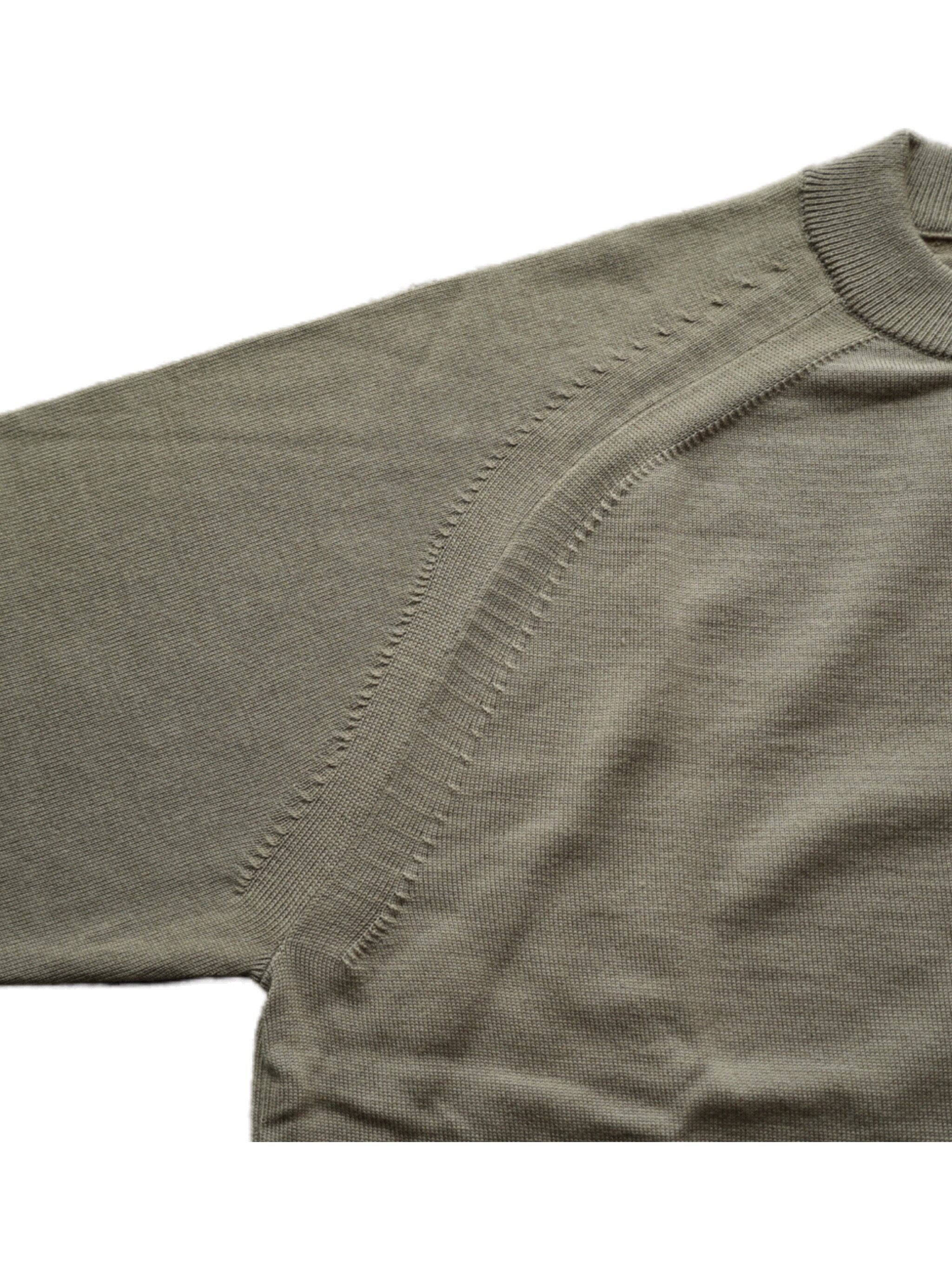 ベビーカシミヤに匹敵する超極細な14マイクロンというスペシャルなノンミュールジングウールを使用したニット。
