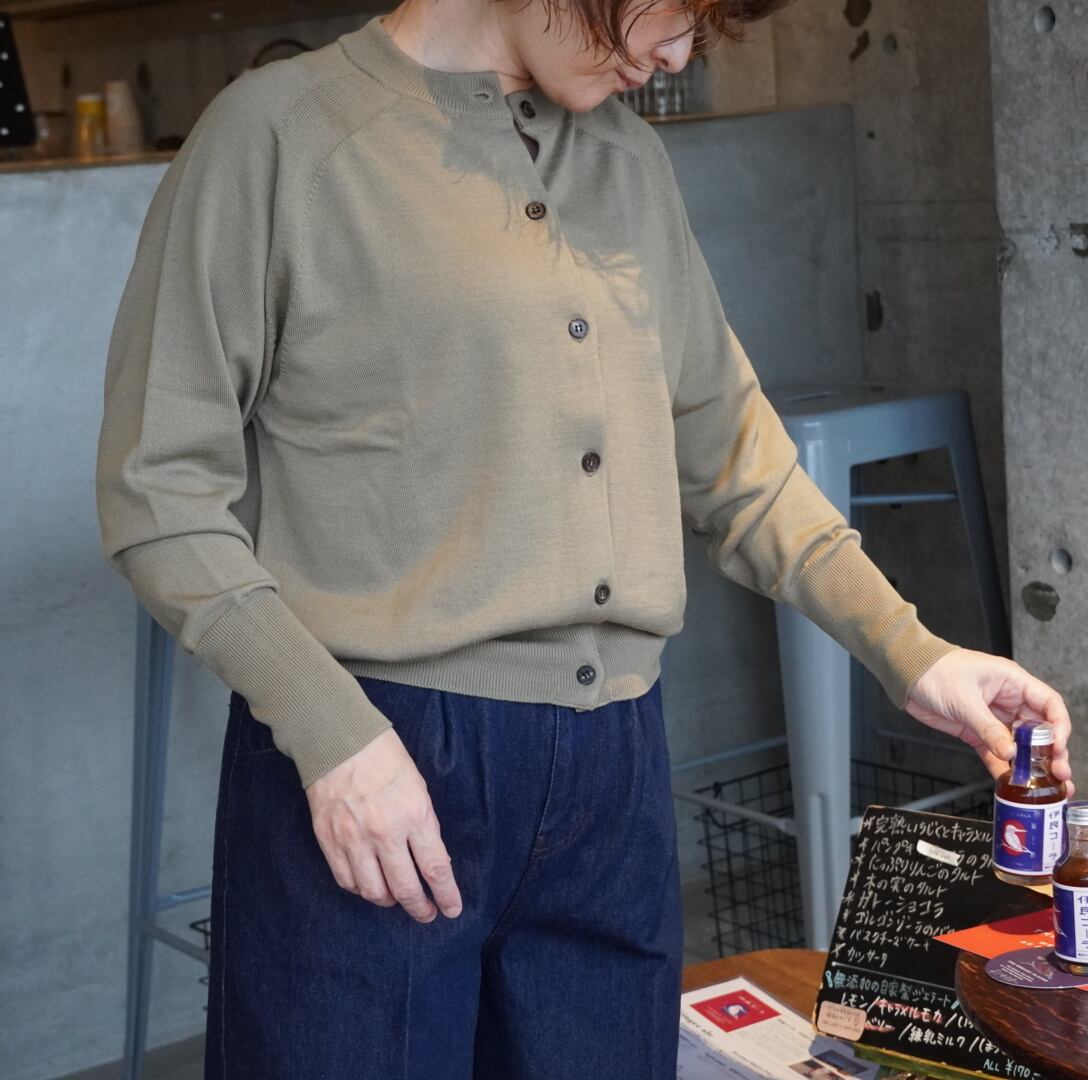 バトナー(BATONER) レディース BABY WOOL CREW CARDIGAN/LIGHT OLIVEカラー