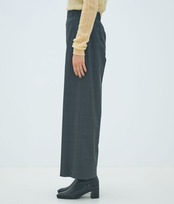 ウールとポリエステルの混紡糸で織り上げ、特殊な染色方法でウールを痛めることなく鮮やかな発色性を持たせたチェック素材を使用したパンツ。