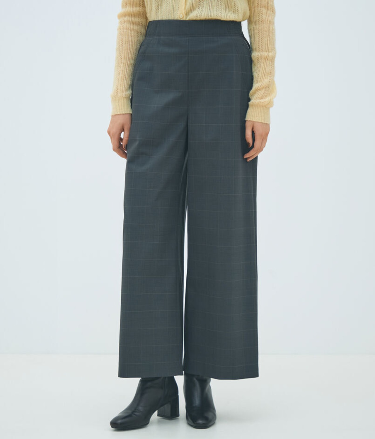 マカフィー(MACPHEE) /ポリエステルウールストレッチチェック フレアパンツ/チャコールカラー