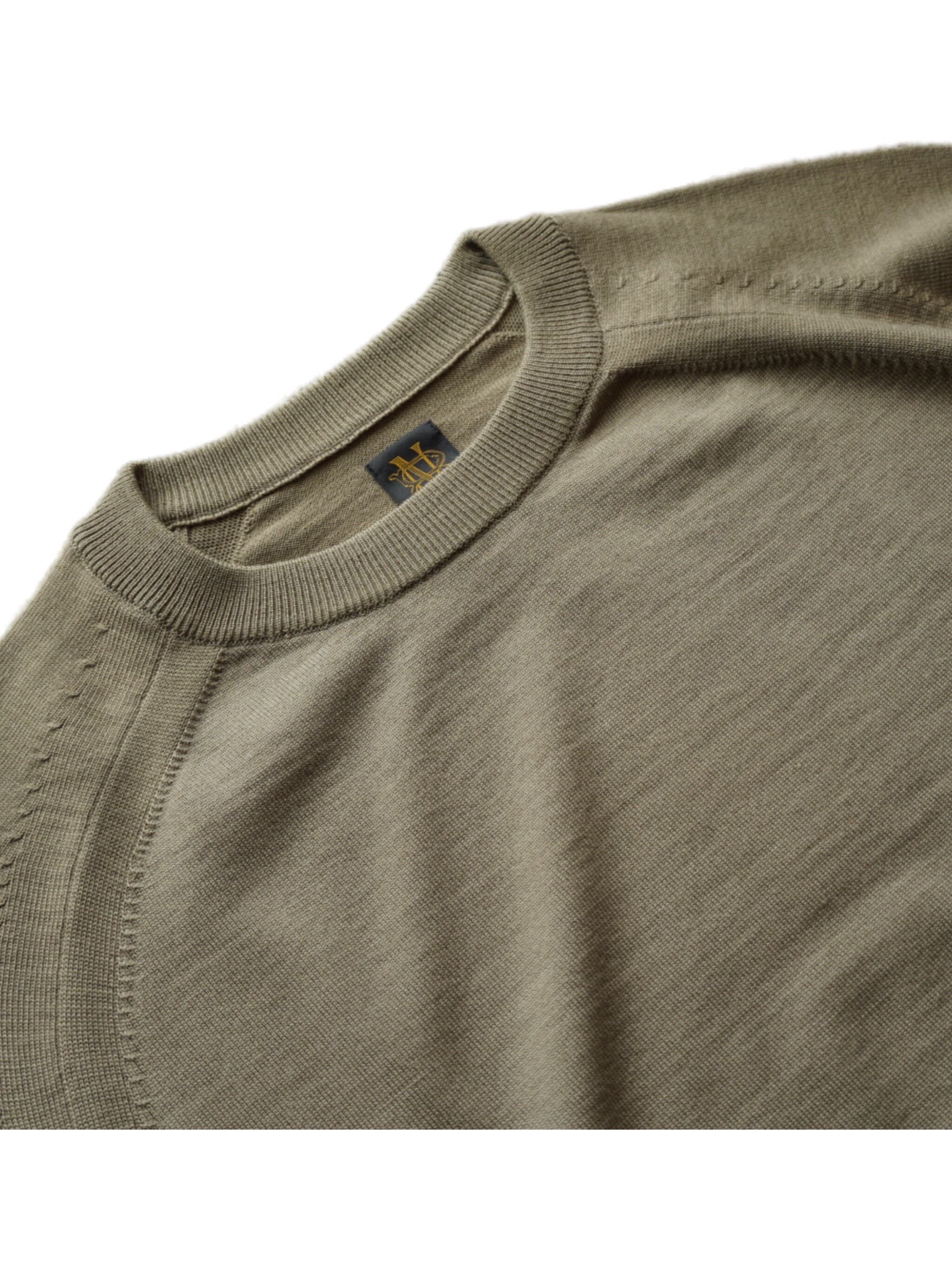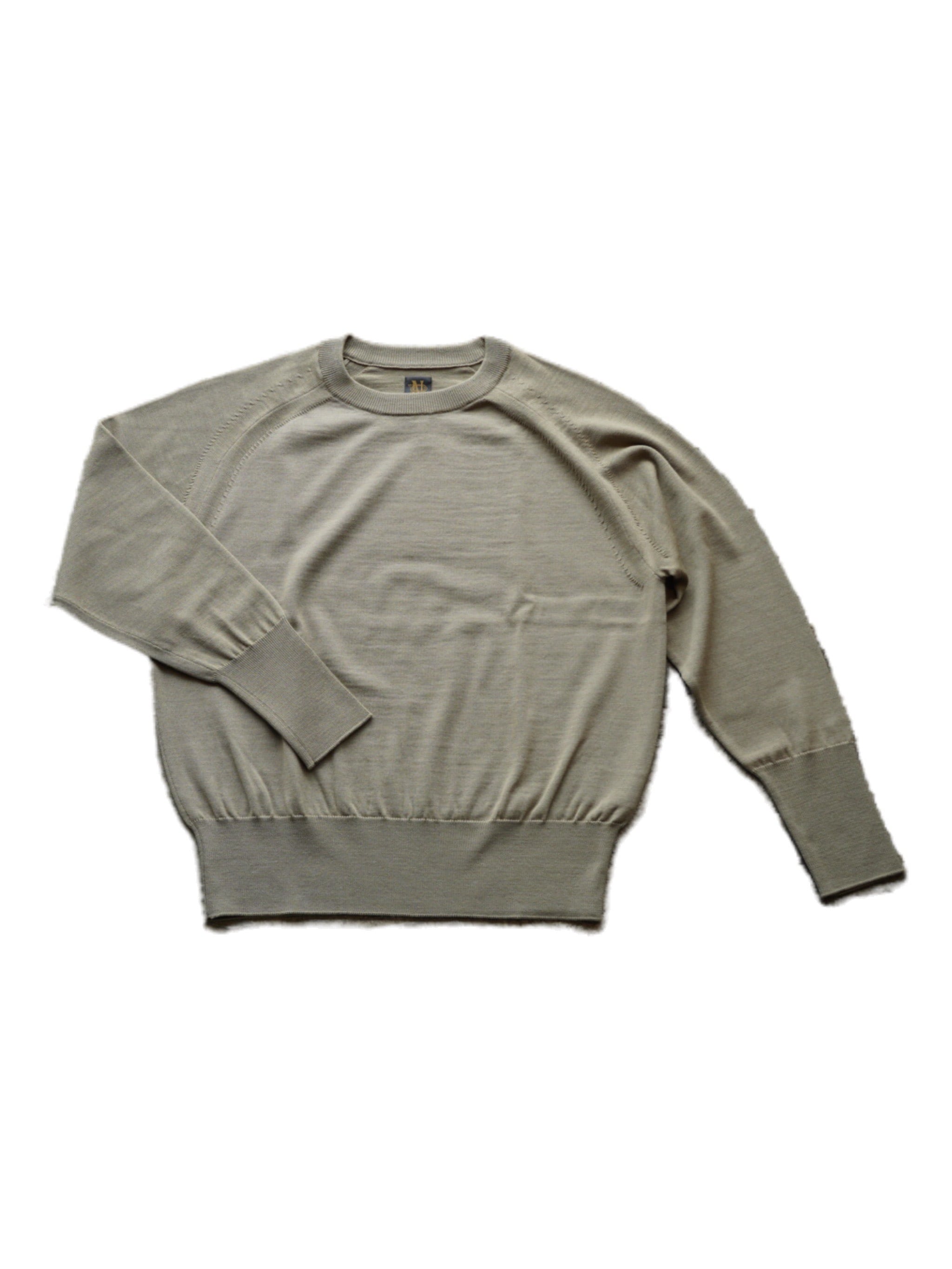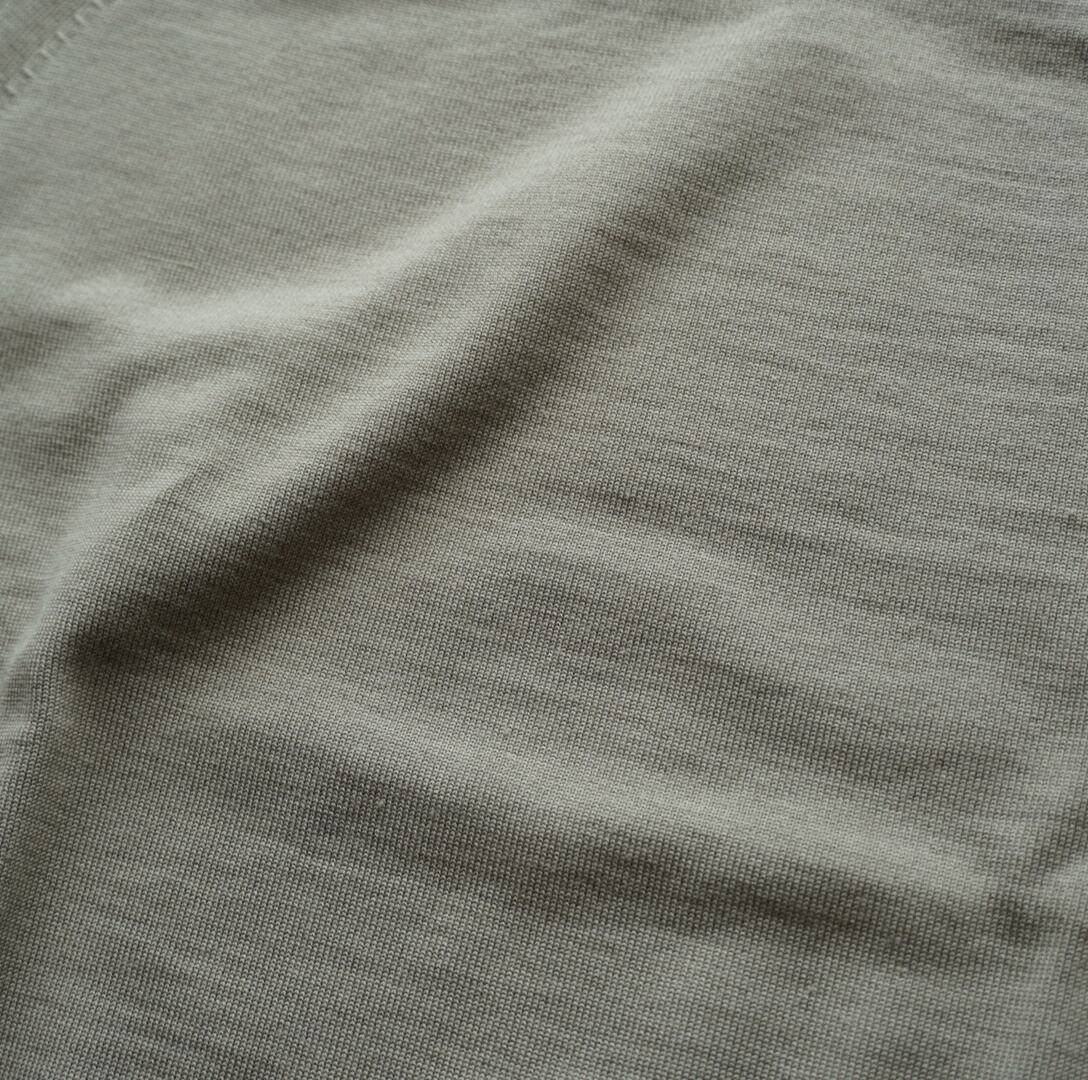 ベビーカシミヤに匹敵する超極細な14マイクロンというスペシャルなノンミュールジングウールを使用したニット。