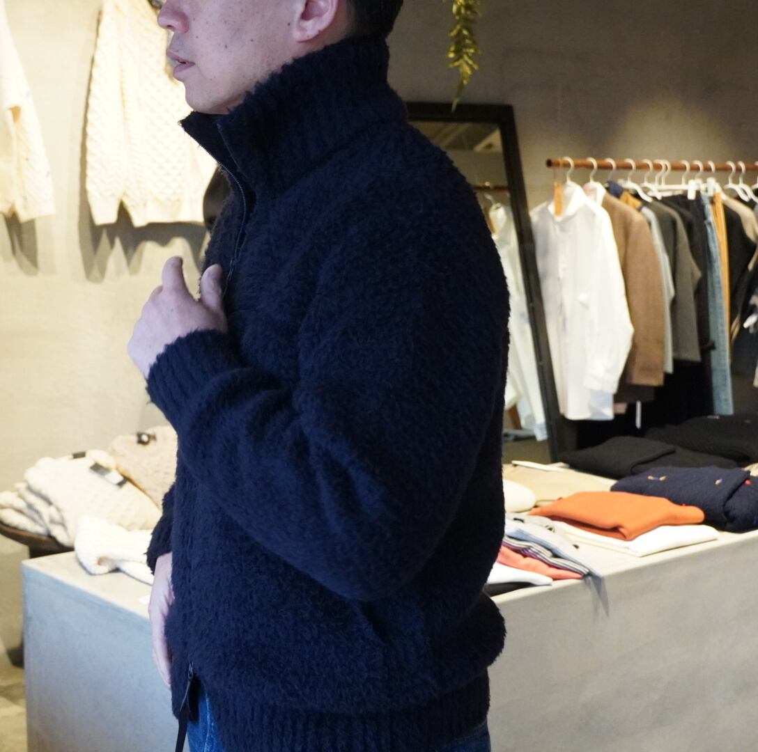 今時期から冬のはじまり頃まではアウターとして、真冬にはコートやダウンの中に合わせられます便利なアイテムです。