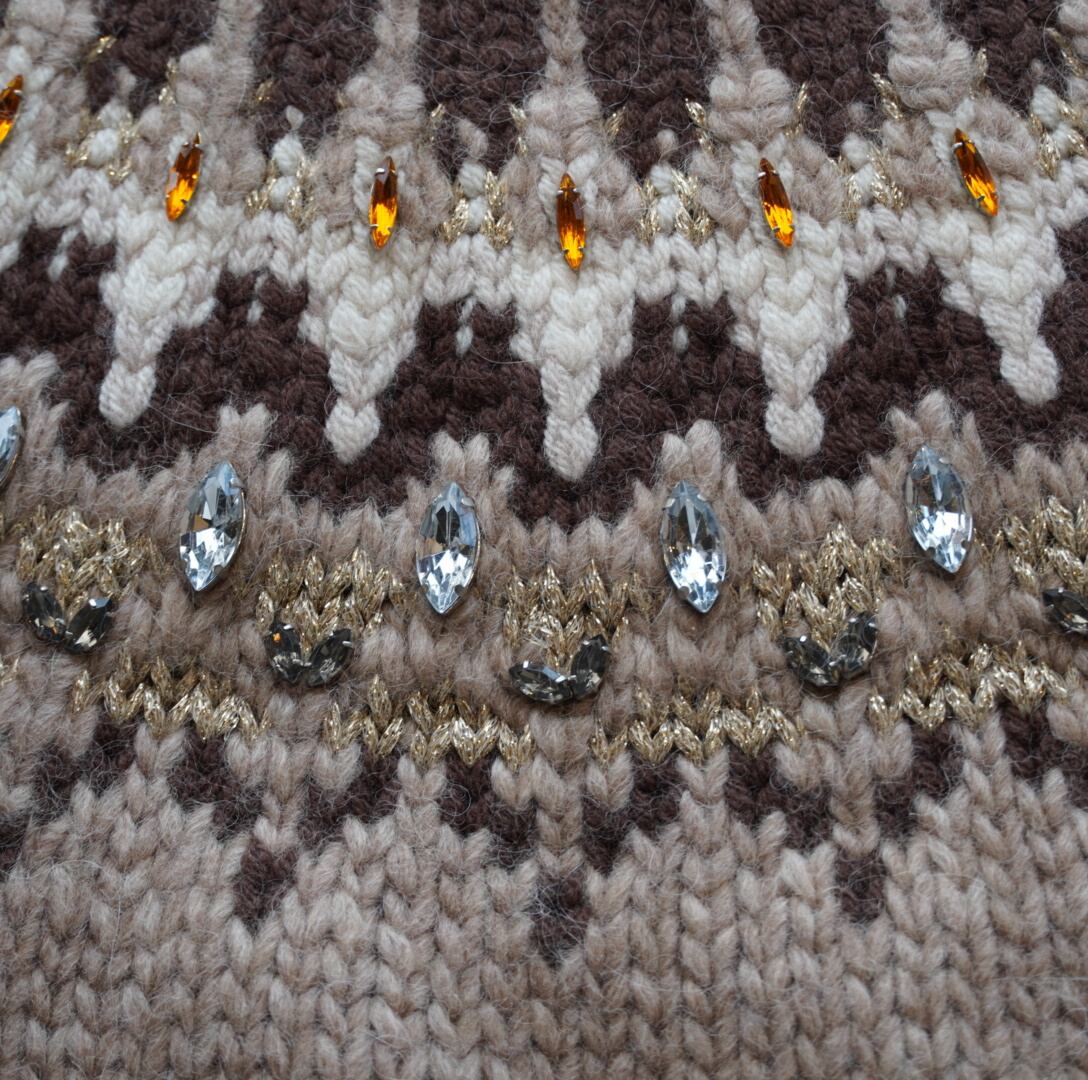 フランス語で「宝石」や「装身具」を意味する『ビジュー』を刺繍したノルディック柄のニットのご紹介。