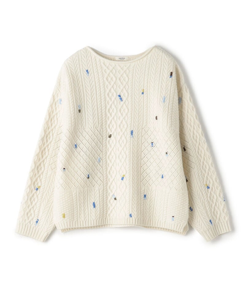 マカフィー(MACPHEE) /ケーブルエンブロイダリー ボートネックプルオーバー/ホワイトカラ-