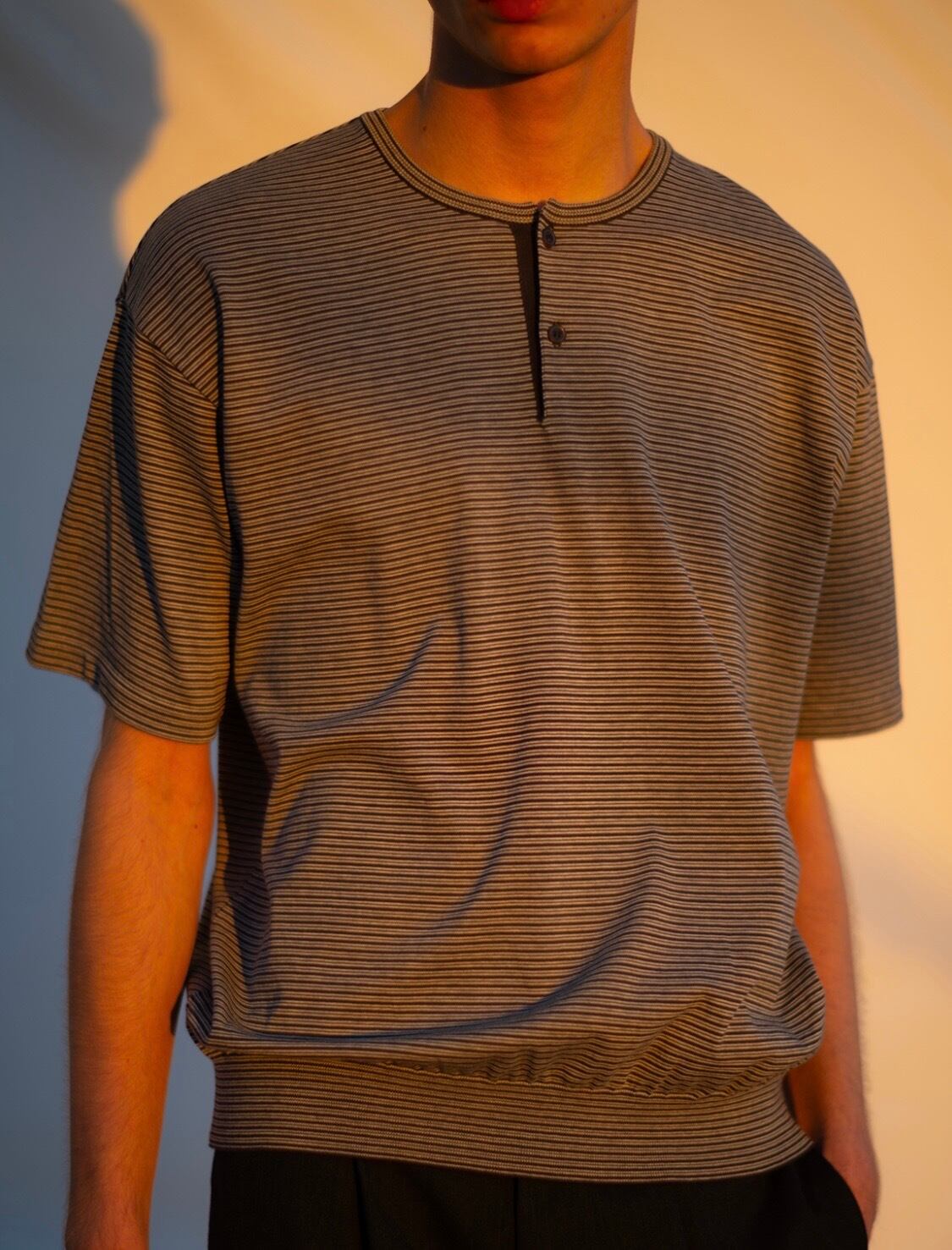 バトナー(BATONER) メンズ/BLOWSING HENLEY NECK T-SHIRT/Charcoal×Grayカラ-