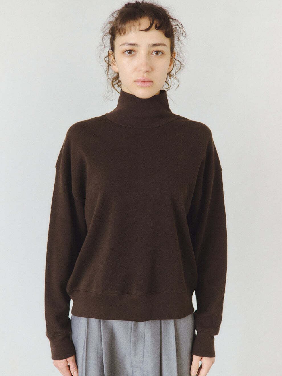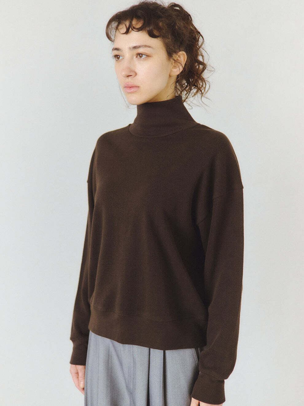 ネックの高さと広さが絶妙なハイネックで顔周りはすっきりとした印象に。