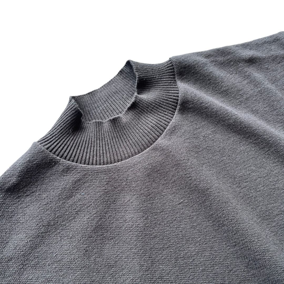 柔らかな蜂の巣鹿編みのモックネックニットソー。