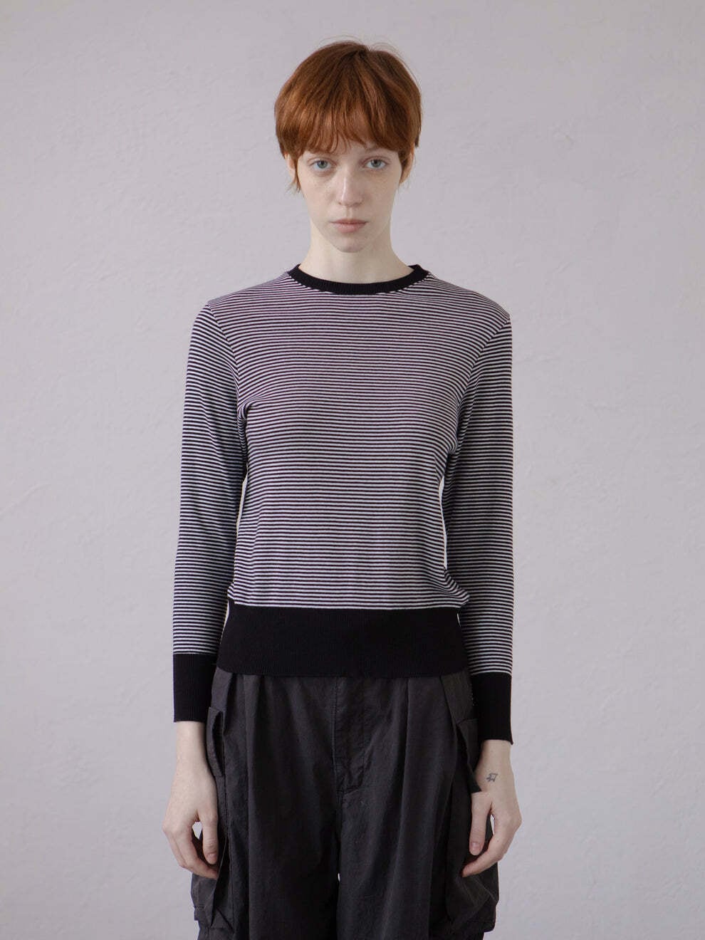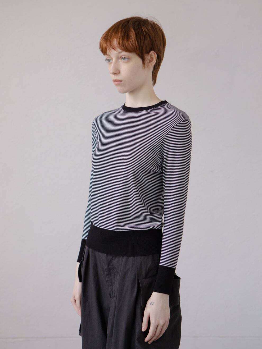 ハイゲージニットのようなコットンクルーネックニットソー。