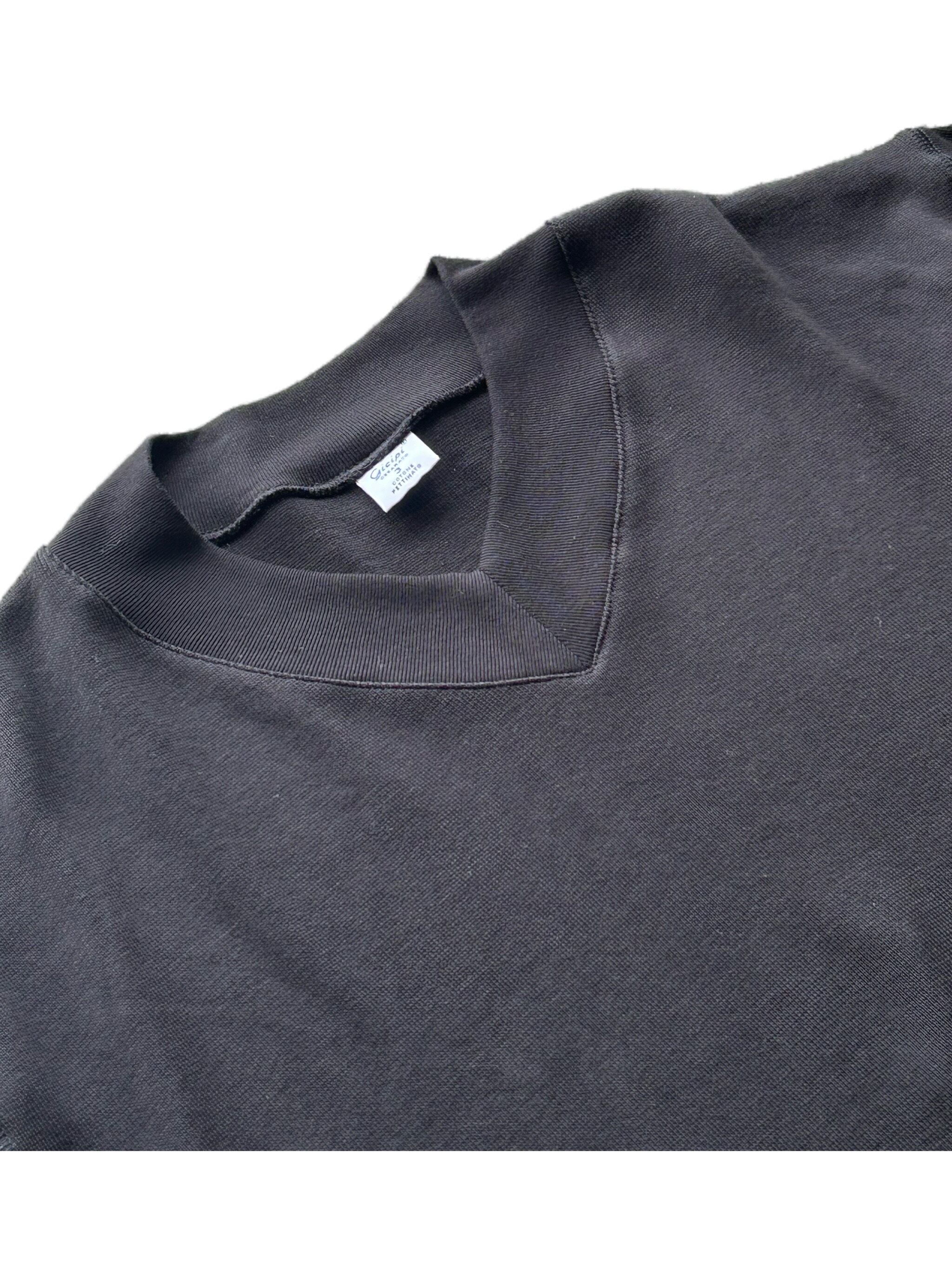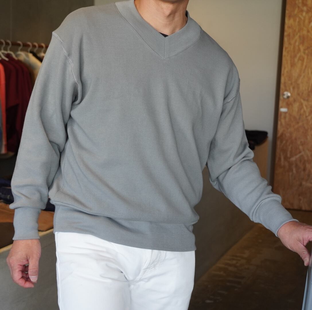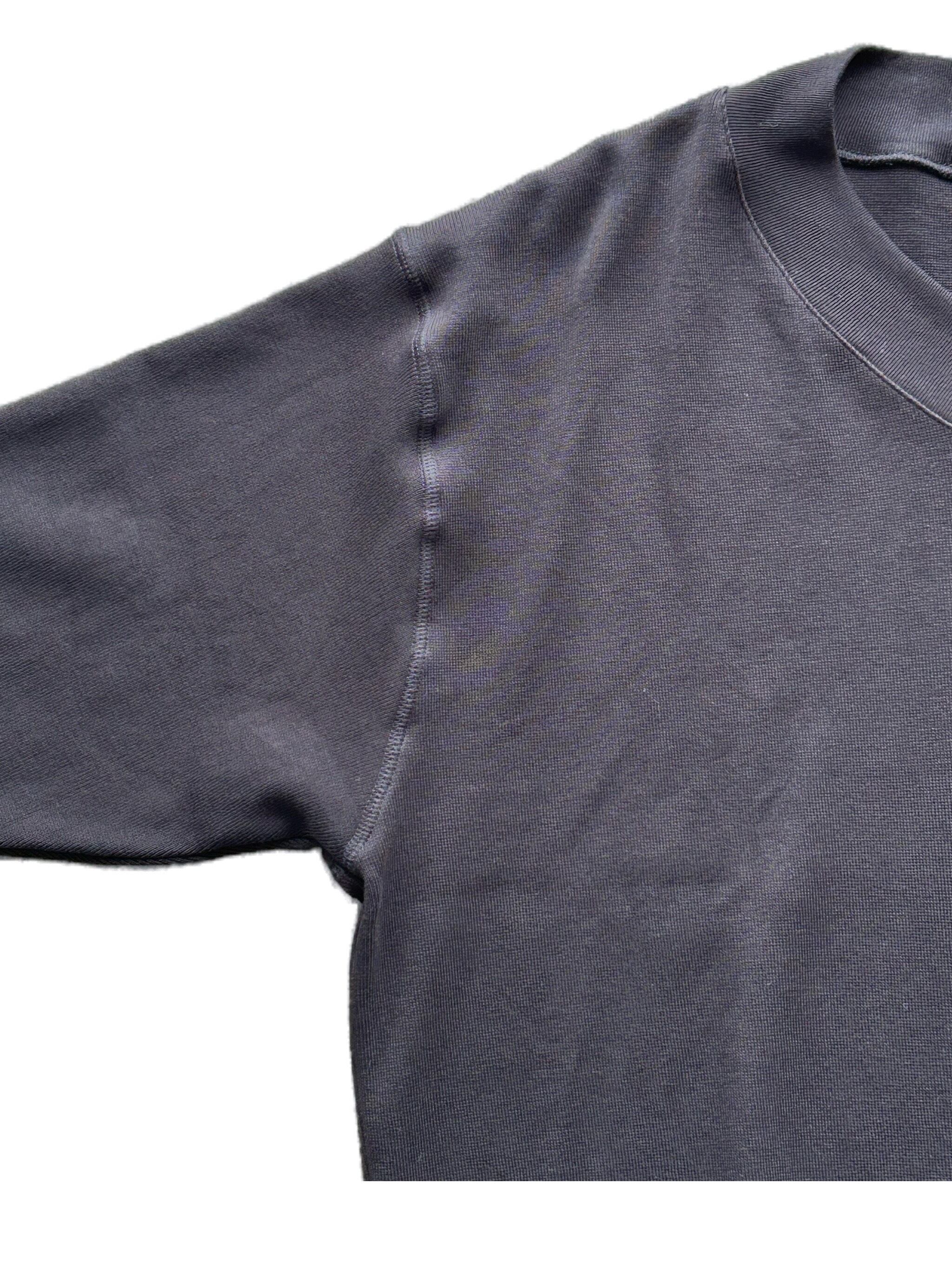ネックデザインは幅広の4.5cm幅ダブルの1×1リブ仕様で程よい開きです。